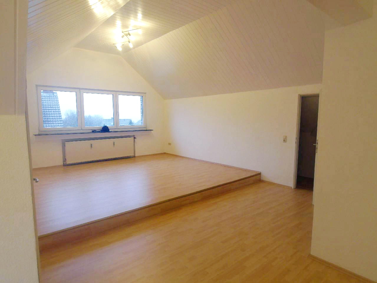 Als Abstellfläche dienen 2 abgetrennte Räume in den Schrägen des Wohnzimmers. Damit sind die Schrägen sinnvoll genutzt worden.