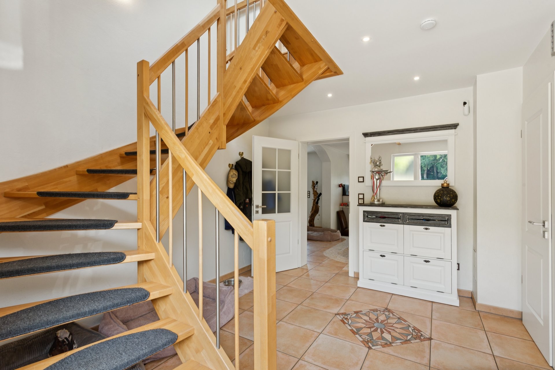 Bereits beim Betreten des Hauses empfängt Sie eine einladende, großzügige Diele mit stilvollen Terrakottafliesen.