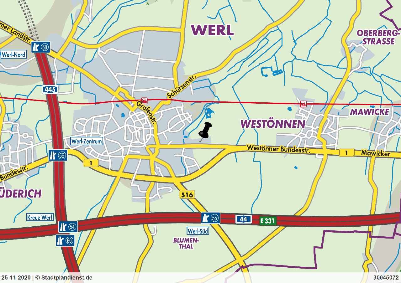 Das Objekt liegt in einem kleinen Gewerbegebiet in östlicher Lage von Werl. Die unmittelbare Nähe zur B1, sowie A44 und A445 zeichnet diese Immobilie aus.