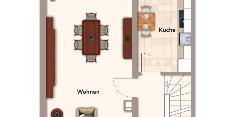 Beim Betreten des Hauses empfängt Sie ein heller Eingangsbereich mit einem praktischen Gäste-WC. Die Küche bietet ausreichend Platz für kulinarische Entfaltung und ist direkt mit dem großzügigen Wohn- und Esszimmer verbunden. Große Fenster sorgen für viel Tageslicht und schaffen eine freundliche Atmosphäre. Von hier aus gelangen Sie direkt auf die Terrasse mit Markise und Windschutz  ein idealer Ort für entspannte Stunden im Freien.