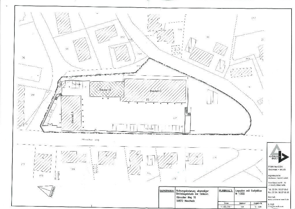 3 Gebäudeteile mit Hallen und Büroflächen. Besucherparkplätze.