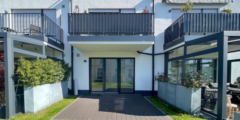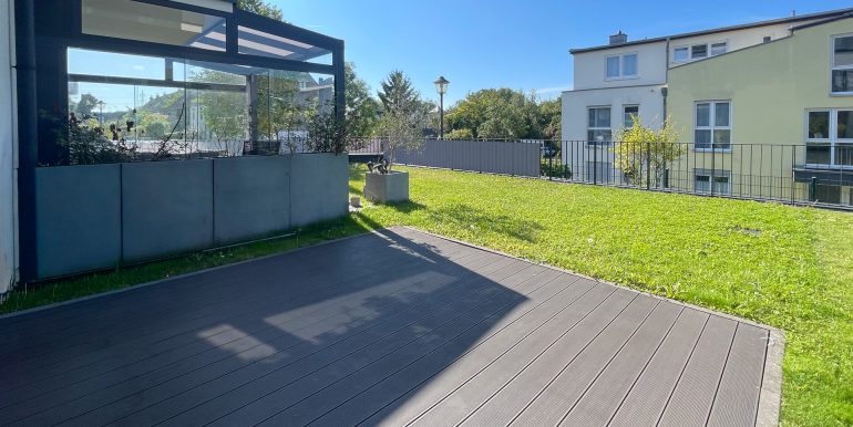 Ein besonderes Highlight ist die großzügige Terrasse (ca. 3 x 3 m), die ganztägig von der Sonne verwöhnt wird und sich hervorragend für entspannte Stunden im Freien eignet. Ein nachträglicher Ausbau zu einem Wintergarten ist problemlos möglich und bietet zusätzlichen Gestaltungsspielraum.