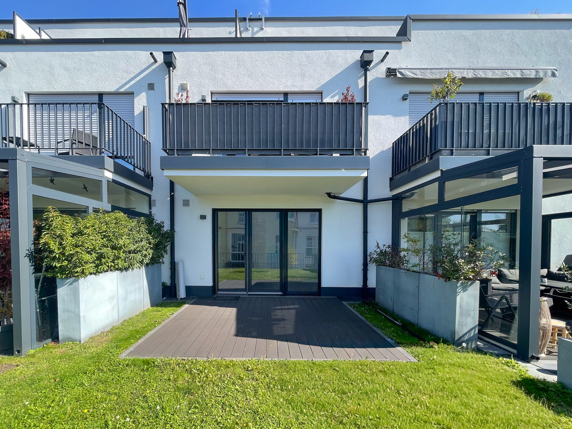 Ein besonderes Highlight ist die großzügige Terrasse (ca. 3 x 3 m), die ganztägig von der Sonne verwöhnt wird und sich hervorragend für entspannte Stunden im Freien eignet. Ein nachträglicher Ausbau zu einem Wintergarten ist problemlos möglich und bietet zusätzlichen Gestaltungsspielraum.