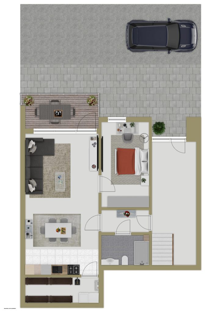 Der offene Wohn-, Ess- und Kochbereich bildet das Herz der Wohnung und lädt zum gemeinsamen Kochen, Entspannen und Verweilen ein. Vom Wohnbereich aus gelangen Sie direkt zur überdachten Terrasse – Ihr Rückzugsort an der frischen Luft, perfekt für sonnige Stunden oder entspannte Abende.