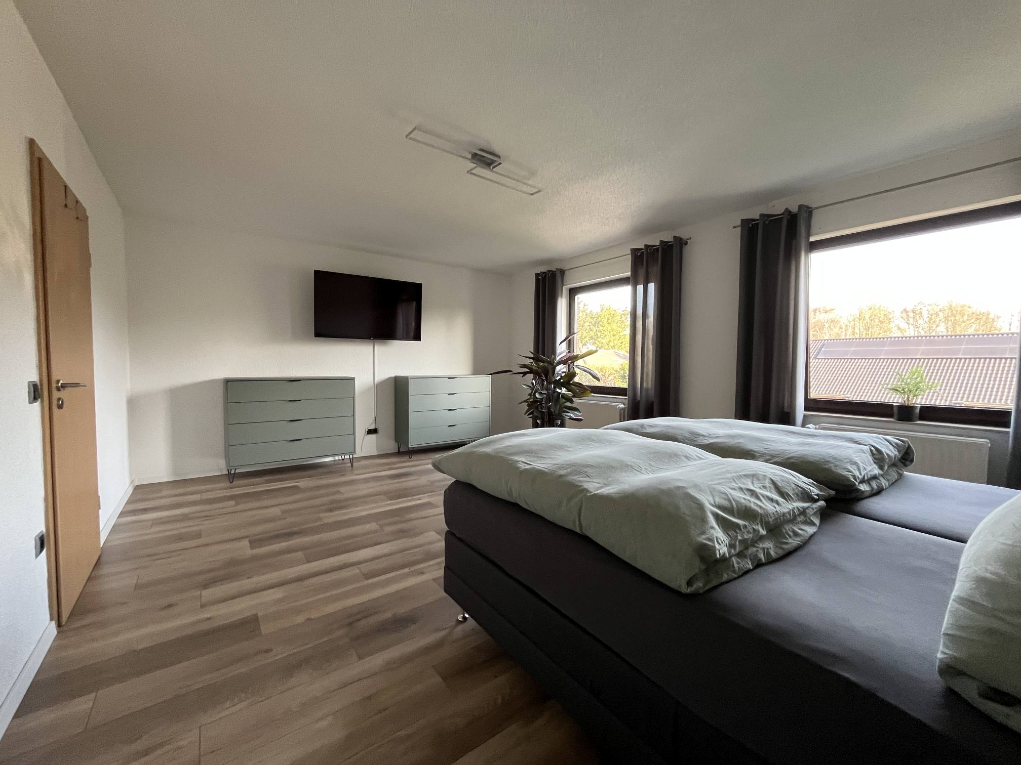 Die Ausstattung präsentiert sich aktuell wie aus dem Ei gepellt – das Haus wurde in 2002 umfassend modersinisert, u.a. graue Bodenfliesen im EG, Laminat im OG, neue Innentüren, Wände mit Rauhfaserputz versehen, Treppenhaus modernisiert, Bad und Gäste-WC ebenfalls aus 2002. Die Beheizung erfolgt über eine Öl-Zentral-Heizung mit Warmwasseraufbereitung aus dem Baujahr 1994. Lediglich das Bad im DG und die Fenster entsprechen dem Baujahr. Die Markise über der Terrasse wurde erst in 2025 erneuert. Die schicke Einbauküche ist ebenfalls bereits im Kaufpreis enthalten.