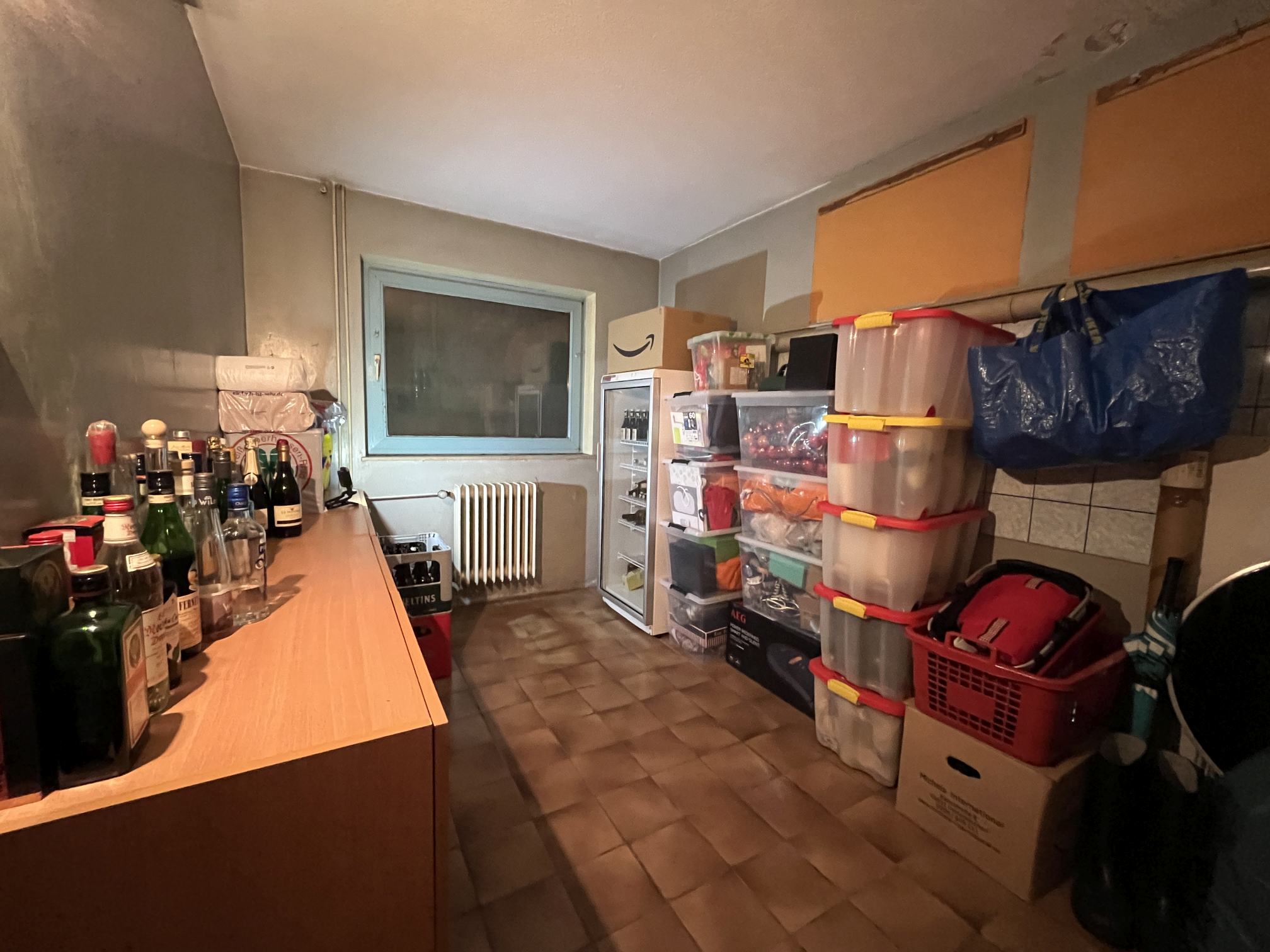 Das Obergeschoss umfasst Badezimmer mit Wanne und Dusche, Kinderzimmer sowie großzügiges Elternschlafzimmer, das bei Bedarf in zwei Räume unterteilt werden kann. Im Dachgeschoss steht ein geräumiger Studioraum mit eigenem Duschbad aus dem Ursprungsbaujahr zur Verfügung. Der Keller bietet Waschküche, Heizungsraum und Öl-Lager sowie zwei weitere Räume zur Nutzung als Hobby- oder Lagerräume.