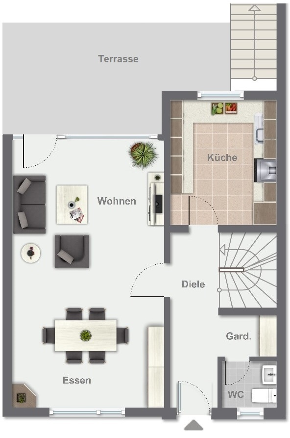 Die Aufteilung des Hauses zeigt sich wie folgt: