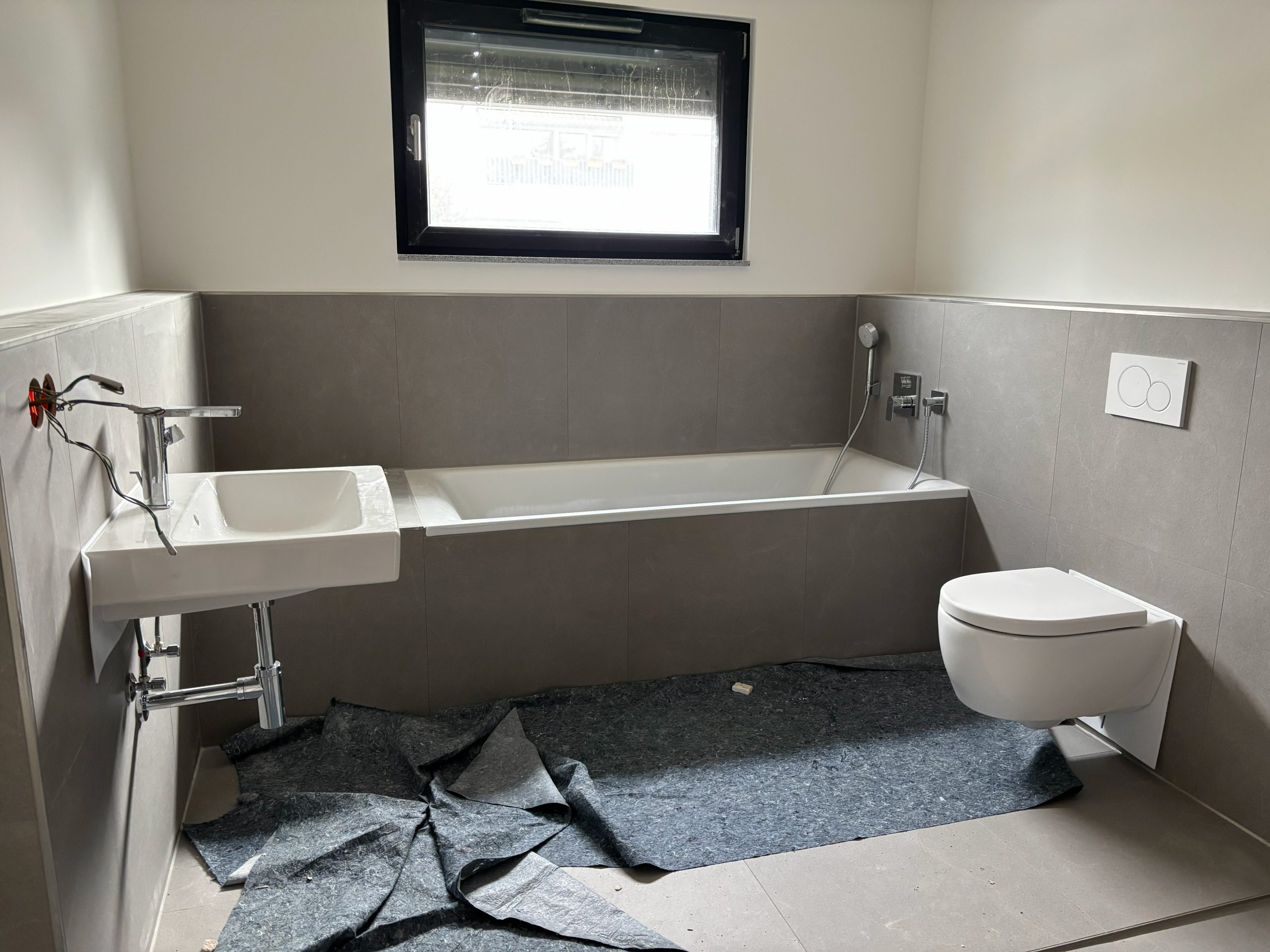 - Badausstattung: Dusche, Badewanne, Fenster im Badezimmer