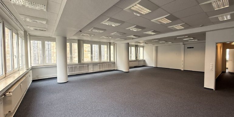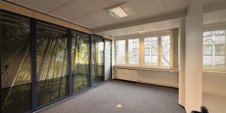 Sehr helle, gepflegte Räume, teilweise Abtrennung mit Echtglaselementen, Glasfasertapete, 4 Einzelbüros, 1 Großraumbüro, Besprechung, Teppichfußbodenoberbelag, abgehängte Kassettendecke mit Beleuchtung, DV-Verkabelung, Server-/Kopierraum, Küche, D+H WC, Aufzug, Rauchwarnmelder, Gegensprechanlage, Fernwärmeheizung.