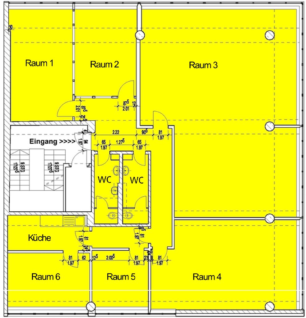 Büro-/ Praxisfläche 3. OG: ca. 227,15m² 6 Räume,Küche, WC