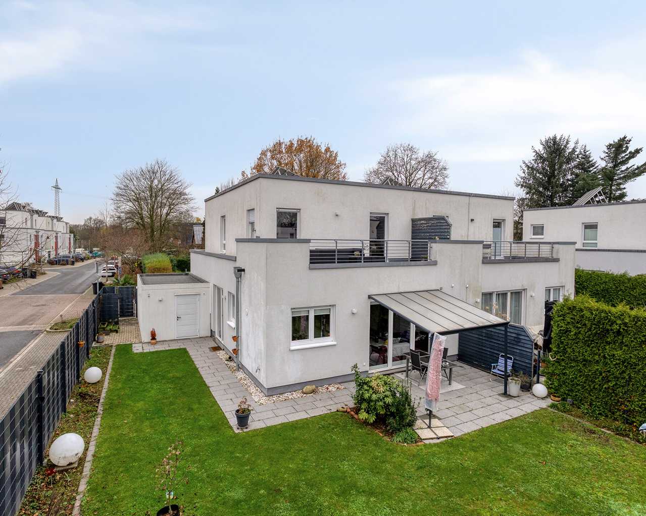 Die Doppelhaushälfte befindet sich in zentraler Lage in Ratingen-Lintorf. Das Wohngebiet entstand in den 2010ern und ist vorwiegend von Einfamilienhäusern geprägt, was zu einer ruhigen und familienfreundlichen Atmosphäre beiträgt. Grünflächen und Parks, wie der nahegelegene Lintorfer Wald und der Poensgenpark, bieten zahlreiche Freizeit- und Erholungsmöglichkeiten für Spaziergänge, Sport oder Picknicks.