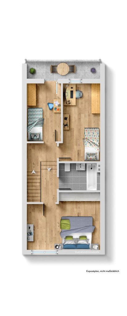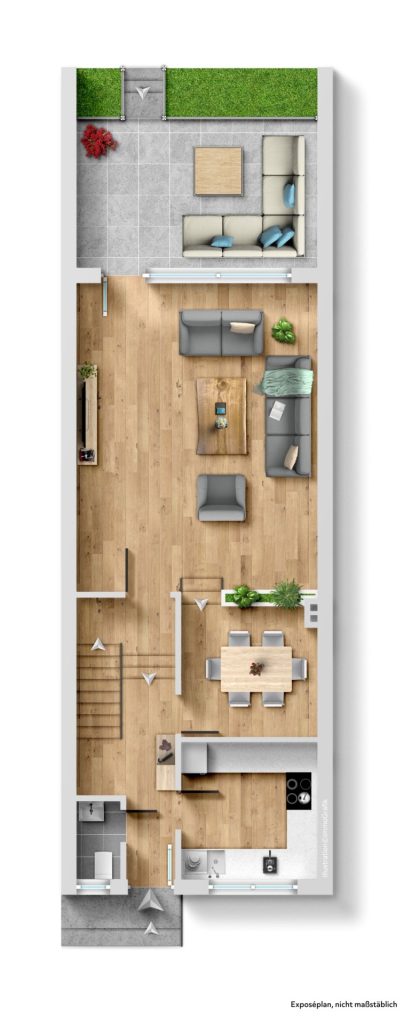 – 4 Zimmer, Küche, Bad, Gäste WC, Loggia und Terrasse