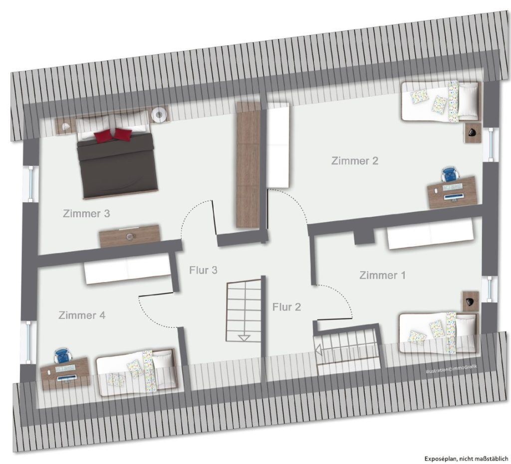 Dachgeschoss vier Schlafzimmer und durchgehende Verbindung