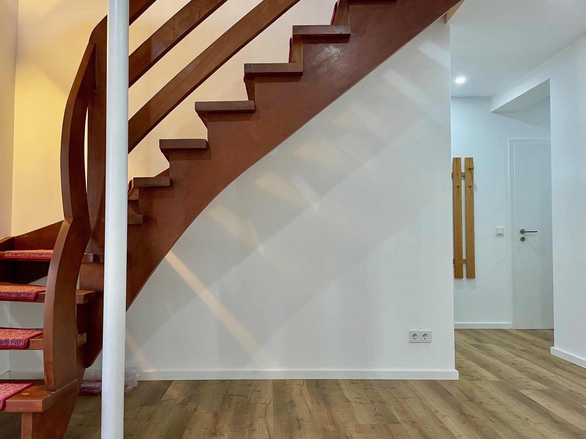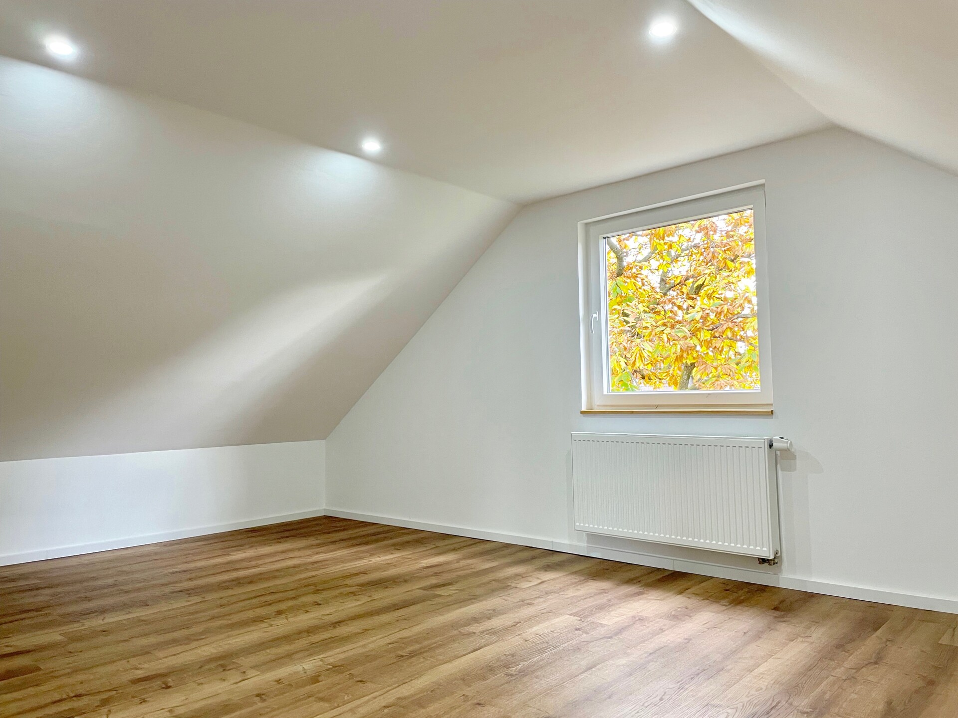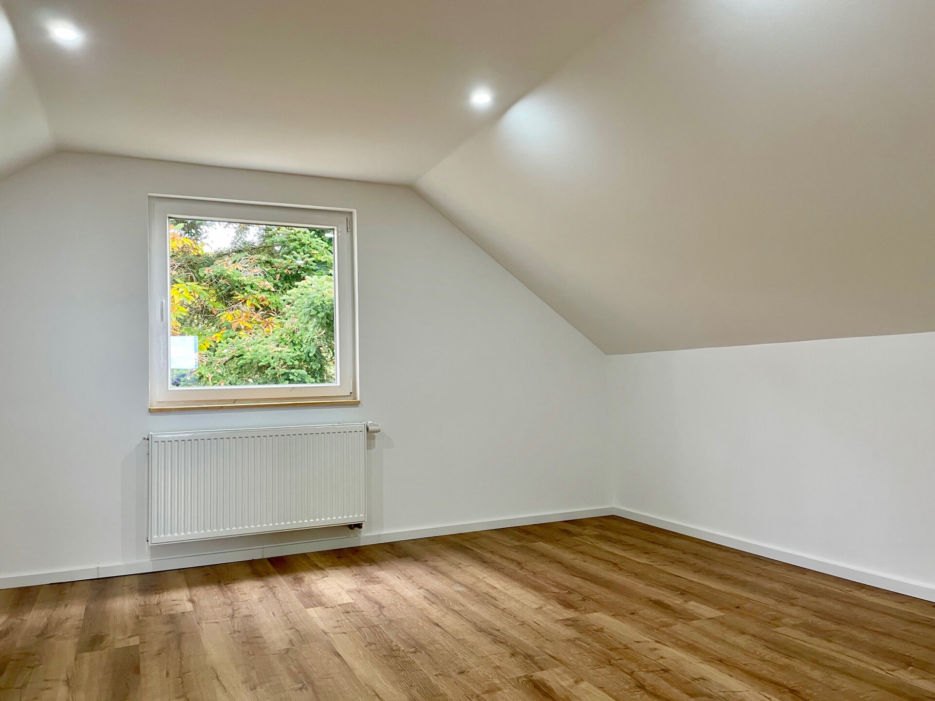 Einziehen und wohlfühlen! Dieses toll gestaltete Einfamilienhaus, erbaut im Jahr 1978 und 2024/25 umfassend kernsaniert, befindet sich auf einem ca. 476 m² großen Grundstück. Die ca. 185 m² Wohn- und Nutzfläche verteilen sich auf drei Ebenen und bieten viel Platz und Komfort für die ganze Familie. Der Eingangsbereich liegt im Kellergeschoss. Hier befinden sich neben Heizungs-, Lagerraum und Garage auch ein Bad und zwei weitere schöne Zimmer für Kinder oder Gäste. Über eine Treppe erreichen Sie den modernen Wohn-/Essbereich der Immobilie mit direktem Zugang in den Garten. Auf der gleichen Ebene befinden sich die offene Küche, zwei Zimmer und ein weiteres Bad mit Dusche. Das Highlight im Dachgeschoss ist ein großer Studio-Raum sowie ein separat abgetrenntes großes Zimmer. Hier kann ein Homeoffice und ein abgetrenntes Schlafzimmer geplant werden.