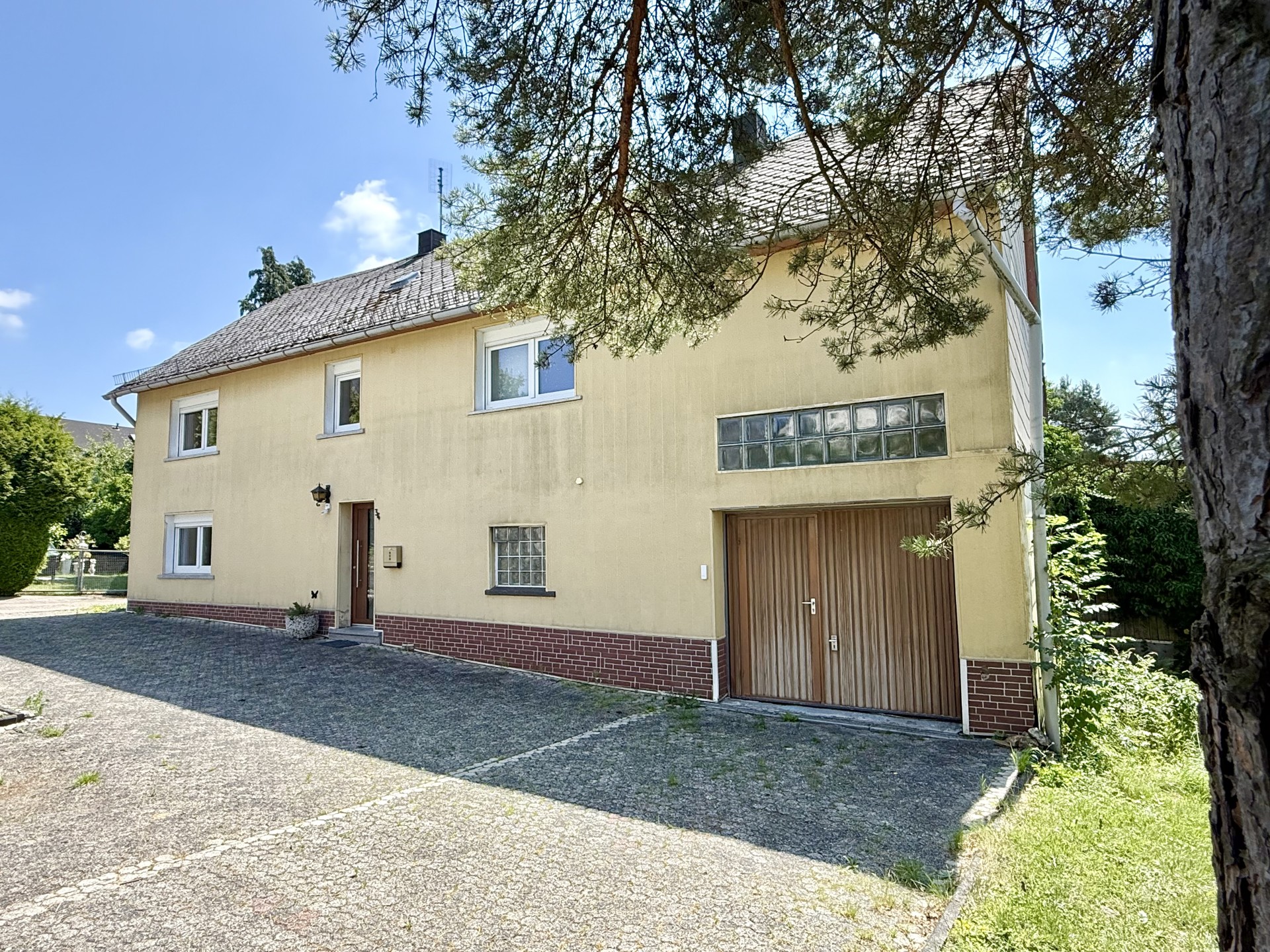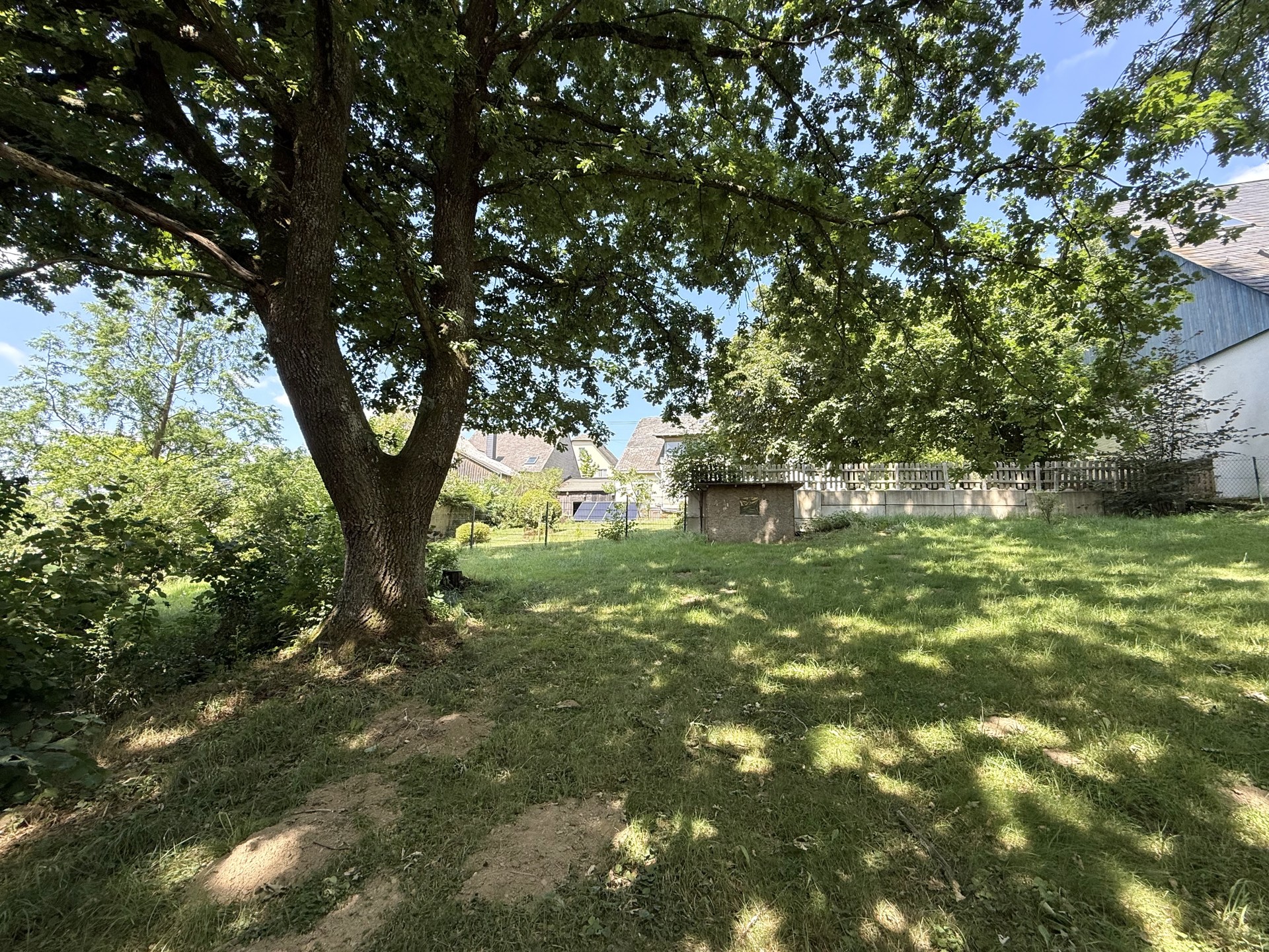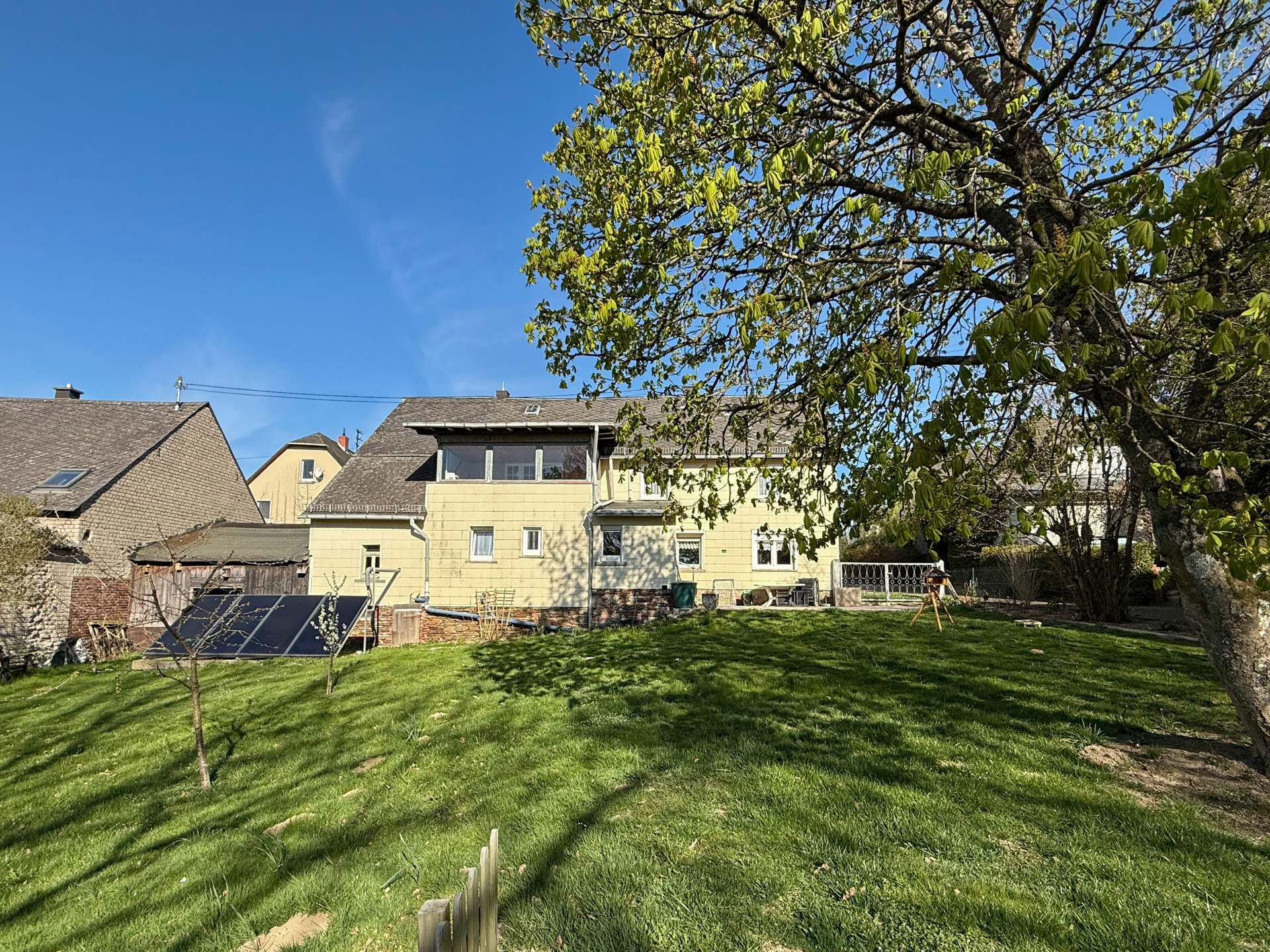 Das ehem. Fachwerkhaus aus ca. 1873 verbindet historischen Charme mit modernem Wohnkomfort & bietet ca. 152 m² Wfl.. Das Grundstück mit rd. 1.816 m² liegt am Ortsrand und eröffnet einen unverbaubaren Weitblick. Es verfügt im unteren Bereich über eine abgetrennte Fläche mit Törchen und einem Hühnerstall – Tierhaltung ist ggf. nach Prüfung der örtlichen Vorgaben möglich. Das Haus wurde im Inneren bereits umfangreich saniert und überzeugt mit einem aufgearbeiteten Dielenboden. Im EG empfängt Sie ein einladender Eingangsbereich, der in die Wohnküche und das Wohn-/Esszimmer übergeht. Das Gäste-WC sowie das Duschbad wurden 2023 komplett erneuert und mit Fußbodenheizung ausgestattet. Der große Heizungsraum schafft zusätzlichen Stauraum. Im OG befinden sich drei Schlafzimmer sowie ein Wintergarten, der durch den Austausch der Fenster weiter aufgewertet werden kann. Ein weiteres, ebenfalls in 2023 erneuertes Bad mit Whirlpool und Fußbodenheizung sorgt für besonderen Komfort. Der Speicher ist ausbaubar. Ein Holzschuppen und eine Garage bieten zusätzliche Nutzfläche.