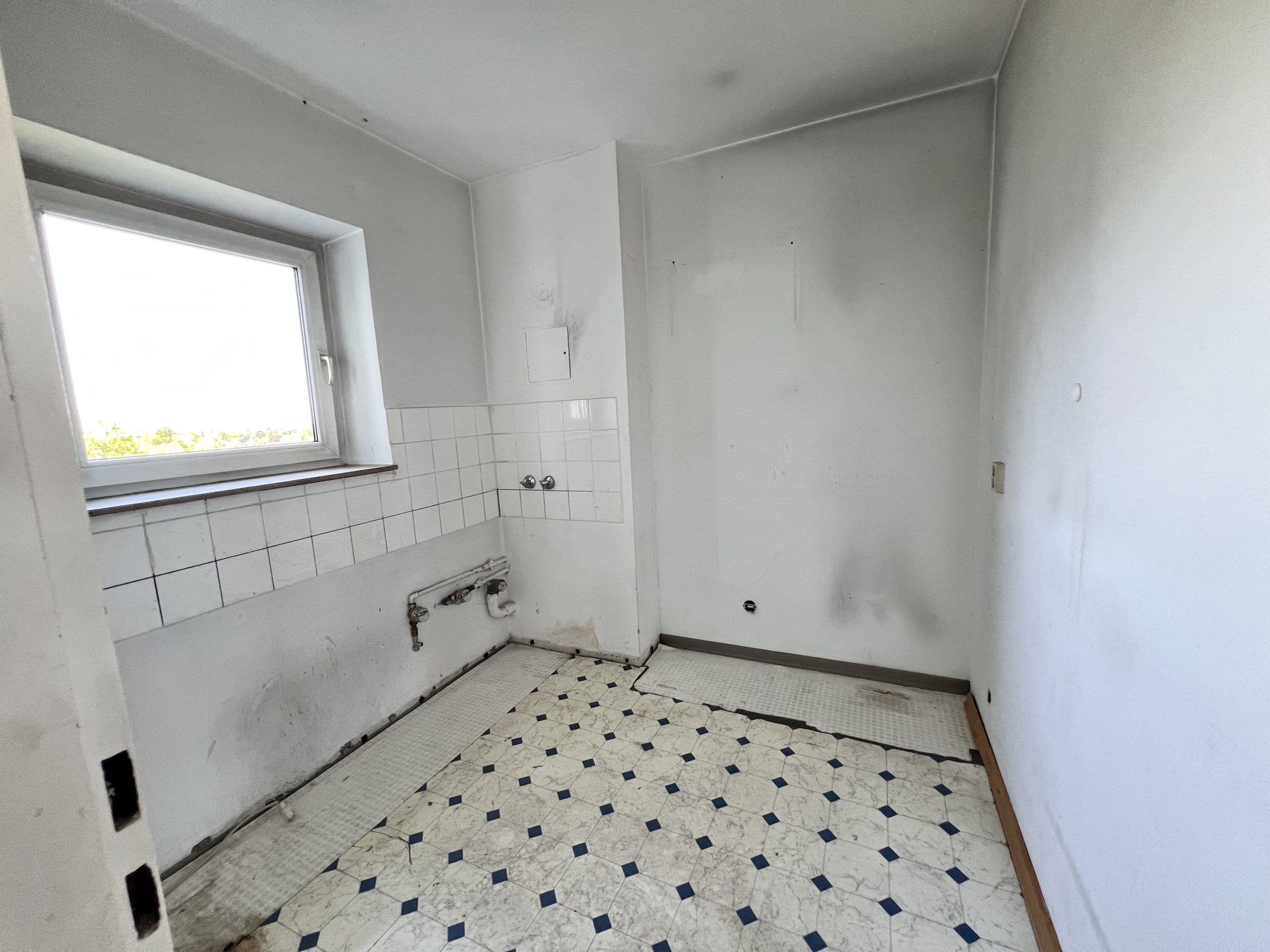 Die optimal geschnittene und sanierungsbedürftige Eigentumswohnung befindet sich im 8. Obergeschoss eines mit 2 Aufzügen ausgestatteten Hochhauses mitten in Refrath. Die Wohnung verfügt über ein großes, helles Wohnzimmer, ein Schlafzimmer, eine Küche, eine geräumige Diele sowie ein Bad mit Wanne. Sowohl vom Wohn- als auch vom Schlafzimmer kann man den großen Balkon betreten. Zusätzlich gibt es in der Diele einen Abstellraum. Zur Wohnung gehören ein Pkw-Stellplatz in der Tiefgarage sowie ein Kellerraum. Das Haus verfügt über einen Fahrradkeller.