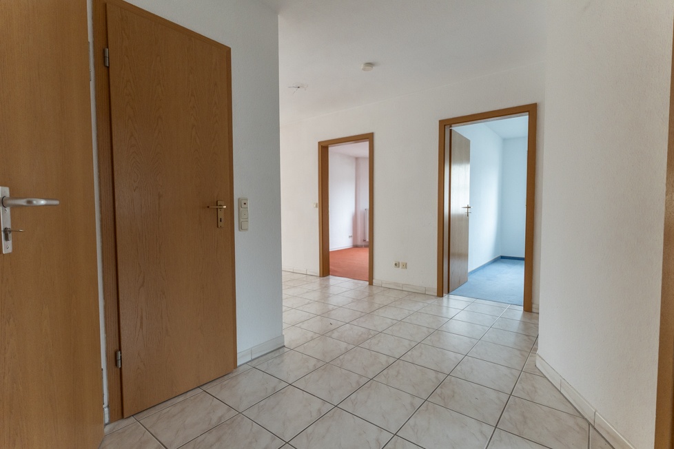 Beim Betreten der Wohnung befinden Sie sich in der zentralen Diele, von der aus alle Räume erreichbar sind. Gleich zu Ihrer linken Seite führt eine Treppe nach oben in den ausgebauten Dachboden. Unterhalb der Treppe befindet sich ein praktischer Abstellraum.