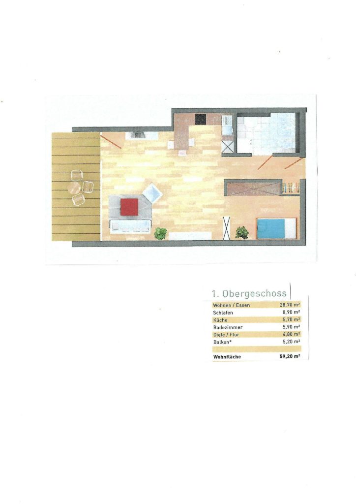 In zentraler Innenstadtlage, bieten wir Ihnen eine lichtdurchflutete gut geschnittene 1 Zimmer Wohnung mit 59 m² , Balkon und bodentiefen Fenstern. Diese verfügt über einen offenen Wohn-Küchenbereich mit integrierter Einbauküche, sowie einem gemütlichen Schlafbereich. Das große behindertengerechte Badezimmer bietet zudem Raum für Waschmaschine und Trockner. Die Diele bietet genügend Platz für eine Garderobe. Die Bodenbeläge variieren zwischen Parkett und Fliesen. Zusätzlich gehört zur Wohnung ein Abstellraum, der direkt gegenüber der Wohnungstür auf gleicher Etage liegt.