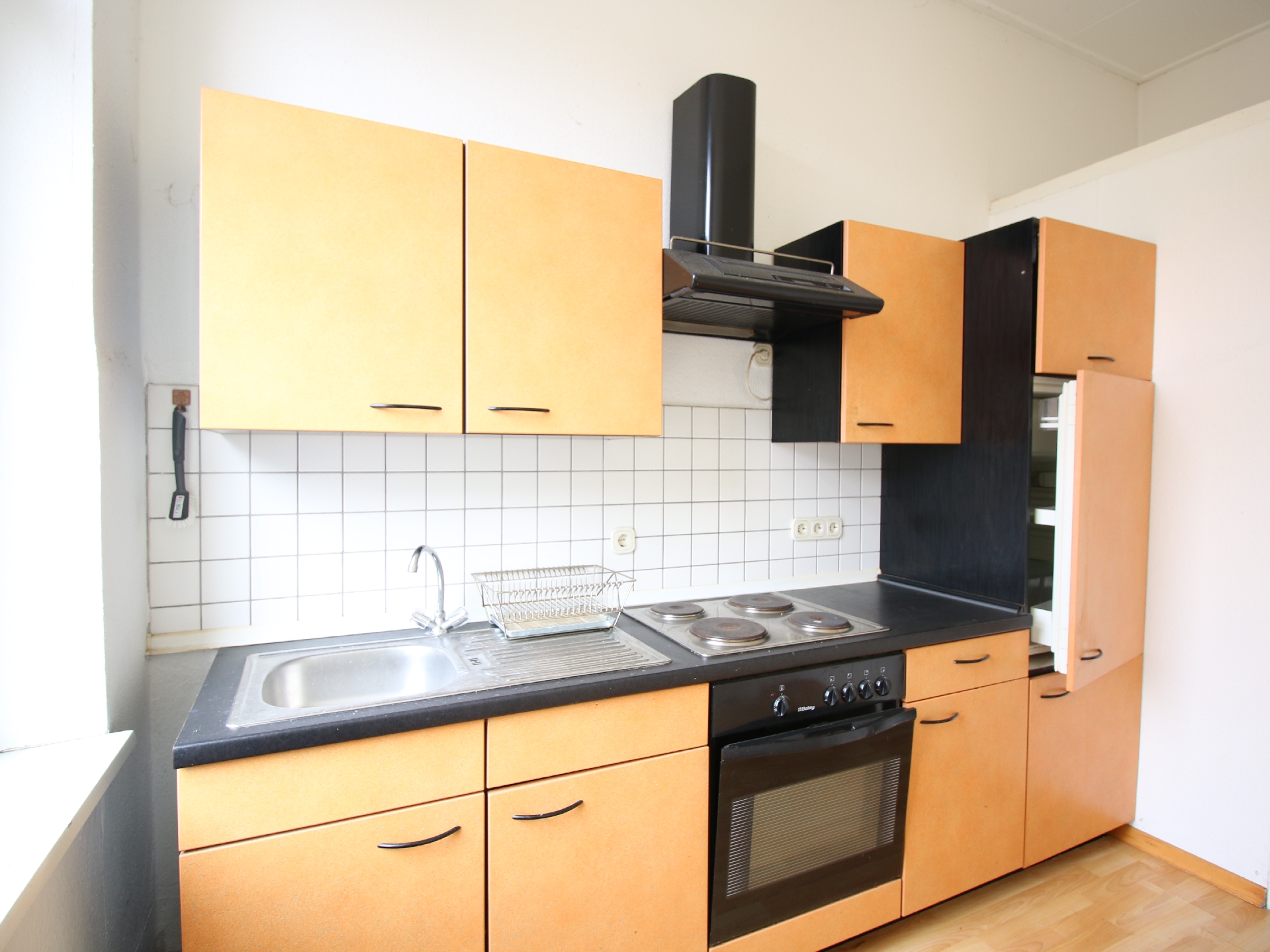Ein separates WC befindet sich ebenfalls in der Wohnung. Die vorhandene Einbauküche kann gerne kostenfrei übernommen werden, sodass Sie sofort einziehen und sich wohlfühlen können.