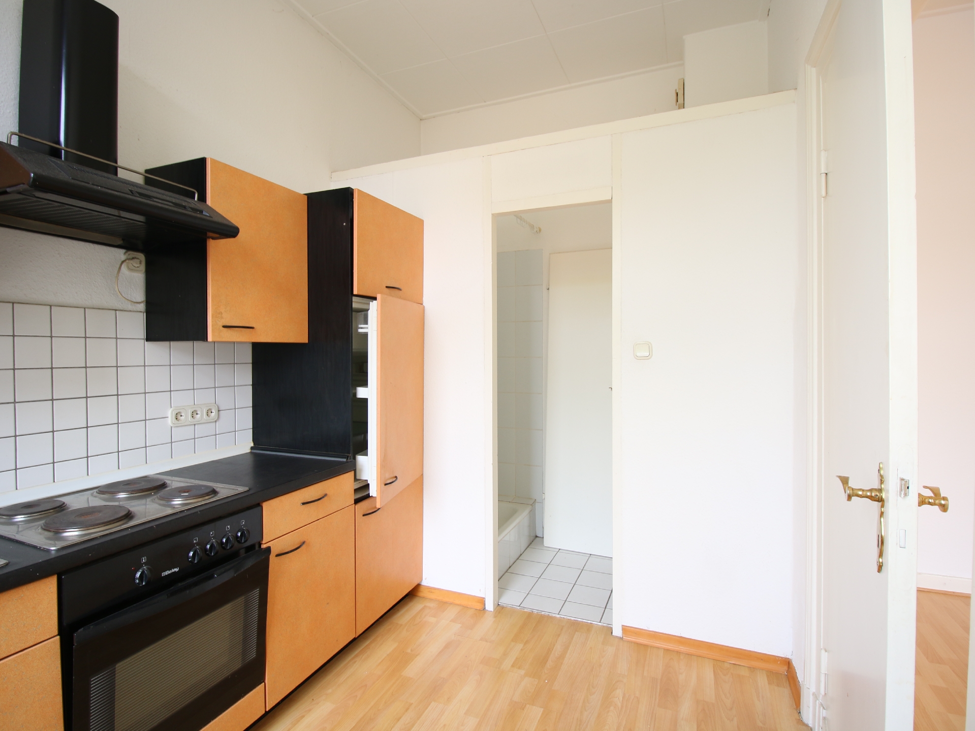 Sie betreten die Wohnung über eine kleine Diele, von der aus alle Räume zugänglich sind. Der helle Wohn- und Schlafraum überzeugt durch seine angenehme Atmosphäre und den klassischen Altbau-Charme.
