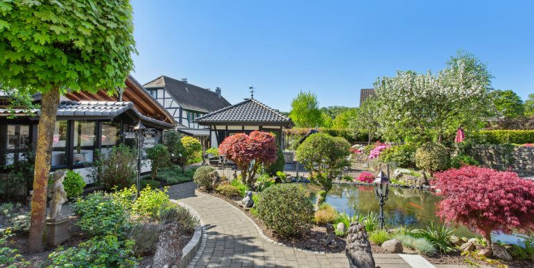 – Liebevoll angelegter Koi-Teich