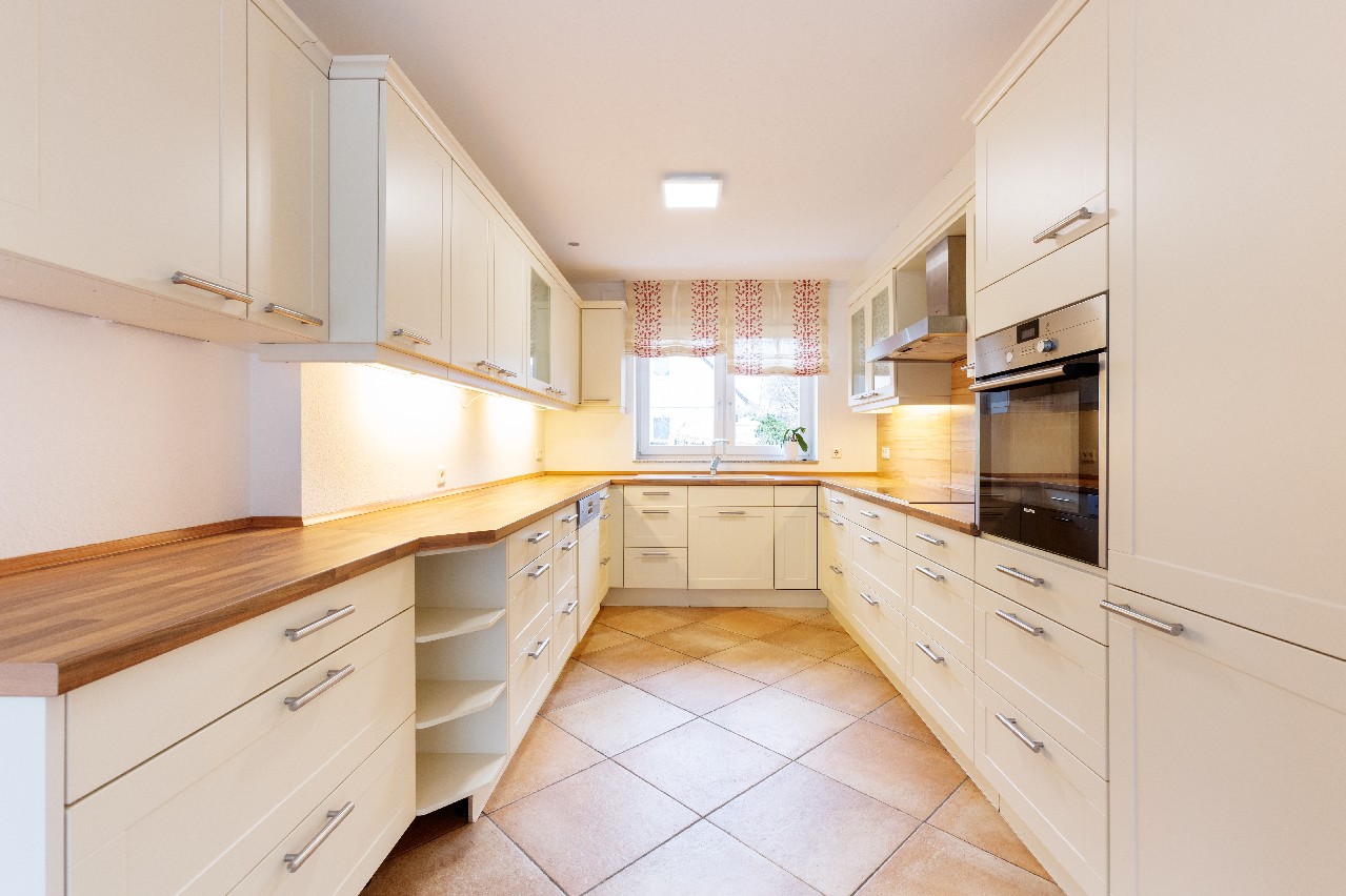 Die moderne und funktionelle Einbauküche ist bereits im Kaufpreis enthalten. Große Fensterflächen sorgen für helle, freundliche Räume, während elektrische Rollläden Komfort und Sicherheit bieten. Eine Fußbodenheizung mit Raumthermostaten ist eine weitere Annehmlichkeit in dieser Immobilie. Das 616 m² große Grundstück ist ein echtes Highlight: Mit einer Breite von ca. 17,5 m und einer Tiefe von ca. 43 m eröffnet sich ein Garten zum Spielen, Toben, Gärtnern, Grillabende, Kindergeburtstage oder einfach ein Glas Wein in der Abendsonne.