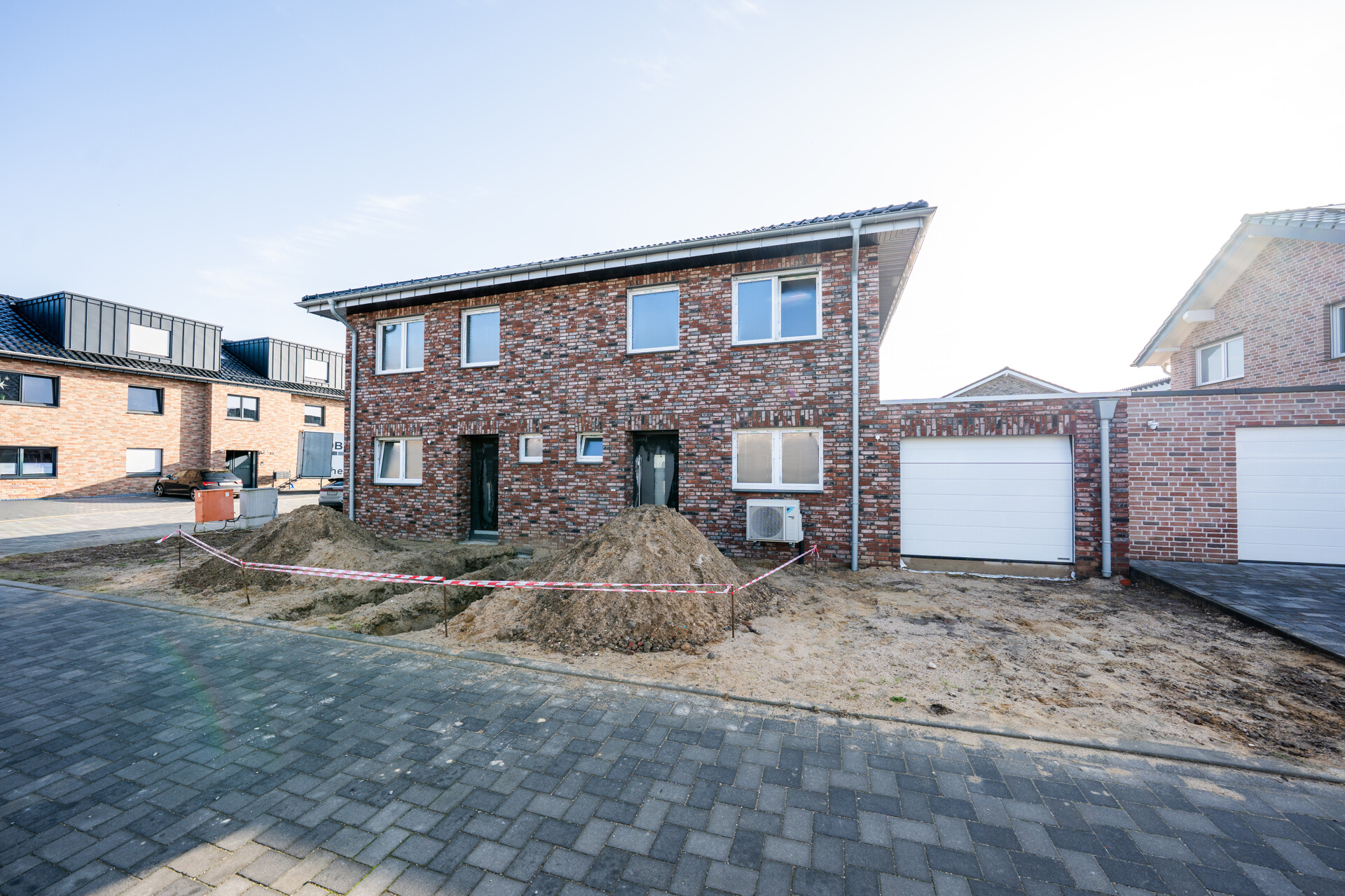 Diese moderne Doppelhaushälfte (ca. 125 m² Wohnfläche, 4 Zimmer) auf einem ca. 263 m² Grundstück bietet Ihnen maximale Gestaltungsfreiheit. Das Erdgeschoss überzeugt mit offenem Wohn- und Essbereich, Küche mit Zugang zum Hauswirtschaftsraum und Garage sowie Gäste-WC. Im Obergeschoss erwarten Sie zwei flexible Zimmer und ein Badezimmer mit Vorwandinstallation für Toilette und Waschbecken sowie Anschlüssen für Dusche und Badewanne.