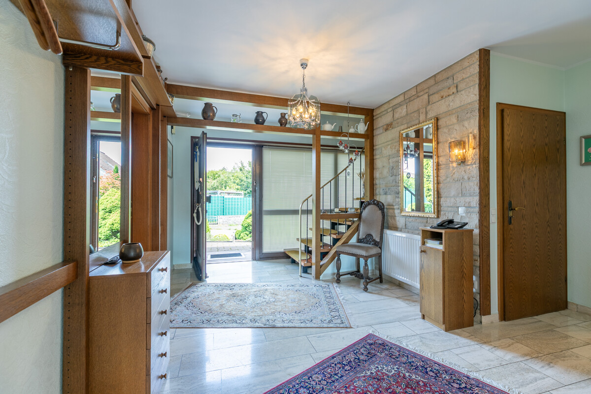 Dieses Haus bietet Ihnen auf zwei Etagen ein Maximum an Wohnkomfort. Hauptverantwortlich zeigt sich dafür unter anderem der großzügige Wohn-/Essbereich, der mit viel Platz für Ihre eigenen Wohnideen auf sich aufmerksam macht. Ein gemütlicher Kamin ist nicht nur optisch ein Highlight, sondern trägt auch zu gemütlicher Atmosphäre bei. Der wunderschöne Wintergarten lässt Sie hautnah am Wechsel der Jahreszeiten teilhaben und verspricht zu jeder Zeit ein gemütliches Plätzchen.