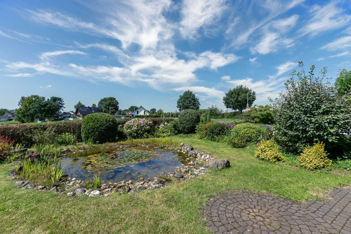 – hübscher Garten mit Gartenteich