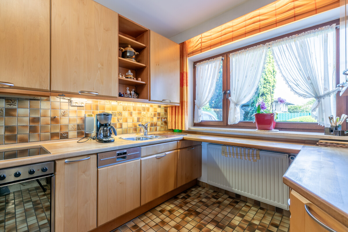 Die erste Tasse Kaffee des Tages genießen Sie in der gemütlichen Küche mit praktischer Durchreiche ins Wohnzimmer. Bequemer geht es nicht. Die Einbauküche ist idealerweise bereits im Kaufpreis enthalten.