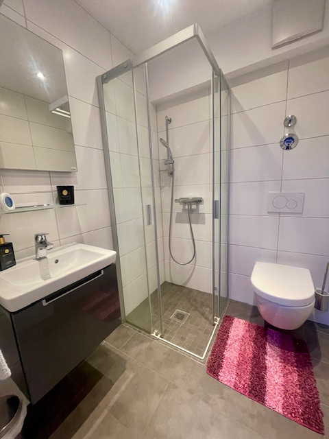 Tageslichtbad modern und gepflegt mit großer, ebenerdiger Dusche