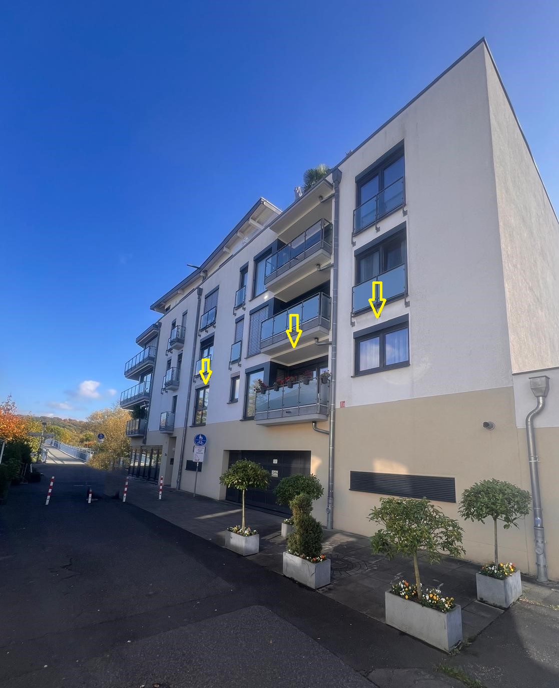 Die Wohnung befindet sich in zentraler Innenstadtlage von Hennef (Sieg), direkt an der belebten Frankfurter Straße einer etablierten Geschäfts- und Einkaufsstraße.