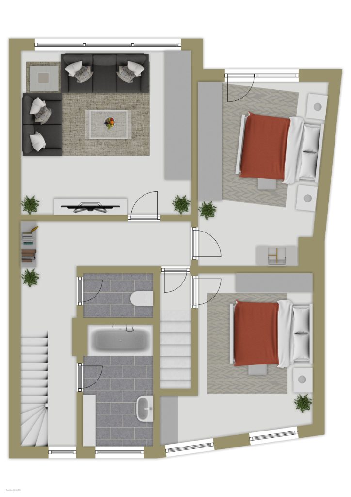Die Wohnfläche von ca. 126 m² umfasst fünf großzügige Zimmer, davon drei gemütliche Schlafzimmer, die Ihnen und Ihrer Familie ausreichend Rückzugsmöglichkeiten bieten. Ein helles Badezimmer sorgt für den notwendigen Komfort in Ihrem Alltag. Der Wohnbereich besticht durch seine warme Atmosphäre. Eine großzügige Terrasse, die sich ideal für entspannte Abende im Freien eignet, gibt es natürlich auch.