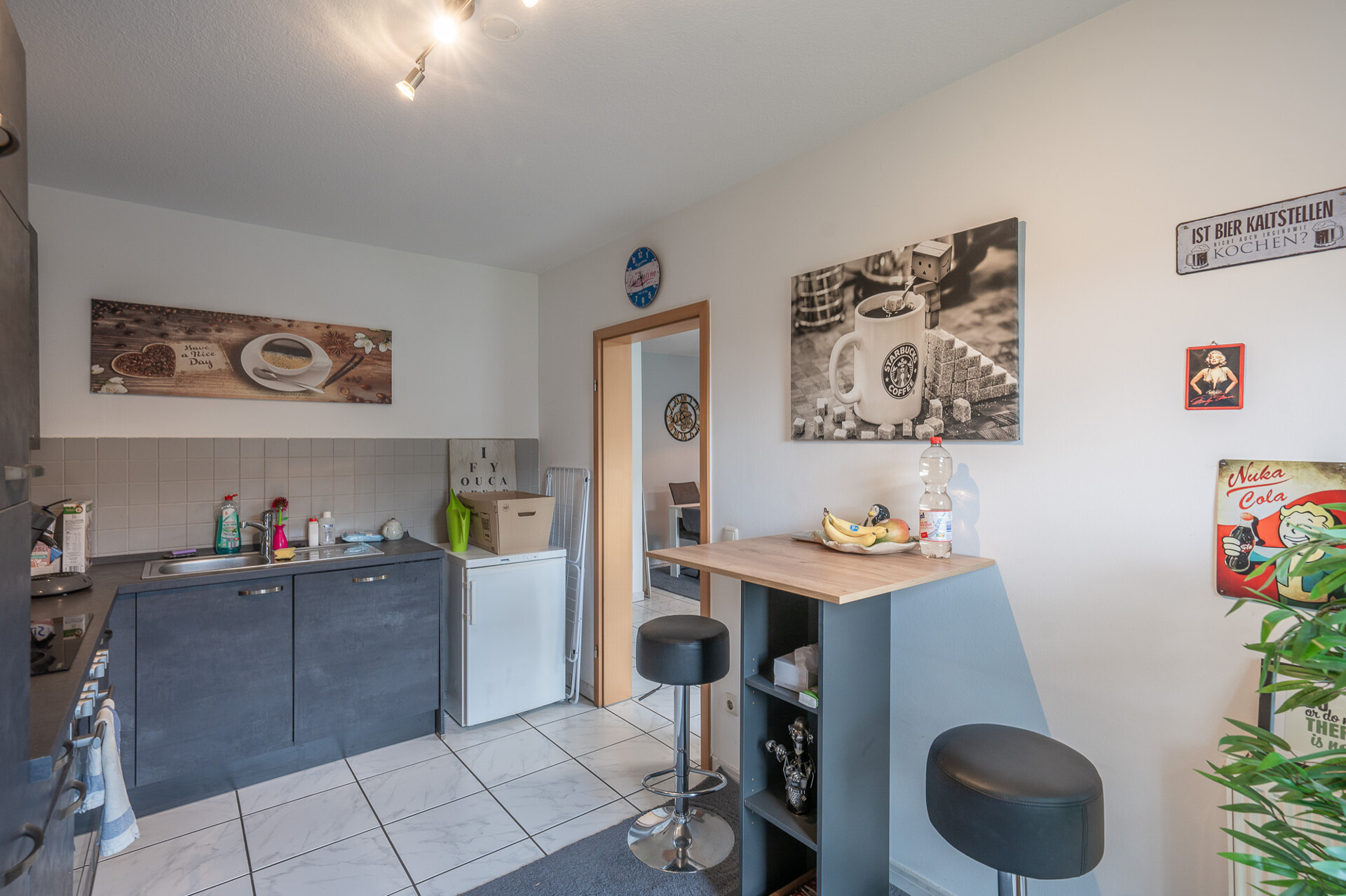 Stellen Sie sich vor, Sie treten ein in eine Wohnung, die sofort Geborgenheit ausstrahlt: ein heller, einladender Flur geleitet Sie harmonisch in alle Räume, während Licht und Wärme durch die modernen Kunststofffenster tanzen. Im gemütlichen Schlafzimmer können Sie den Alltag hinter sich lassen und in Ruhe abschalten. Das innenliegende Badezimmer verwöhnt mit Badewanne und separater Dusche – ideal, um den Tag entspannt zu beginnen oder in aller Ruhe ausklingen zu lassen.