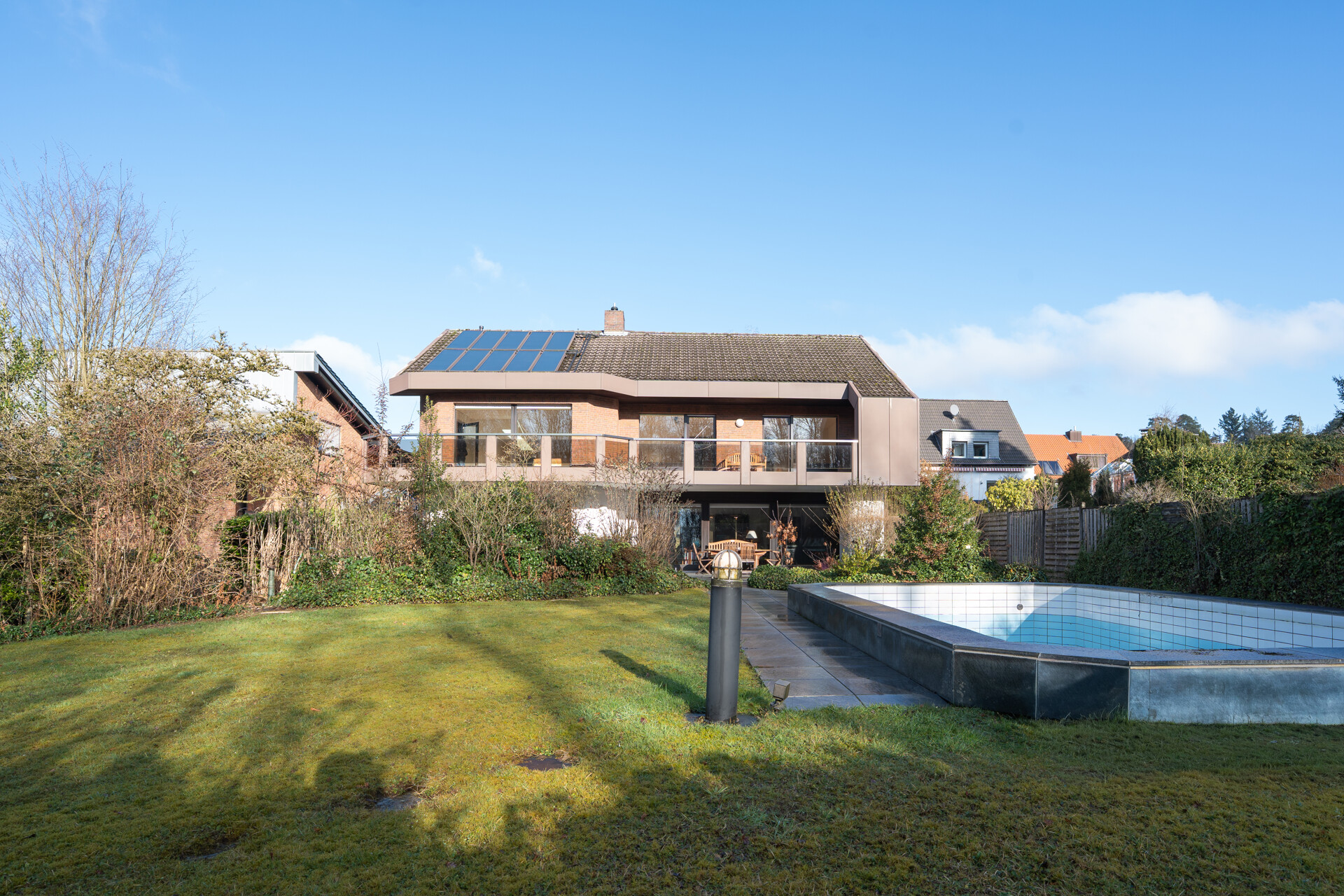 – beheizter Pool im Außenbereich mit Sonnenkollektoren