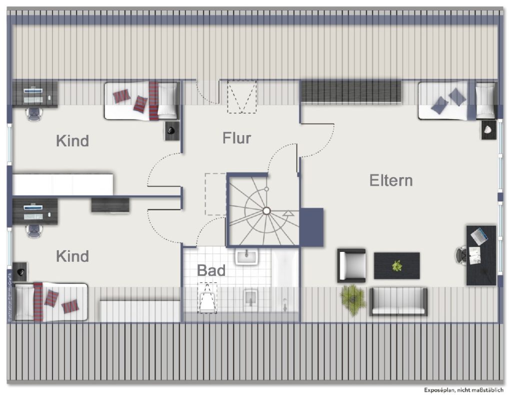 Das großzügige Entrée zeigt sich hell und geräumig. Der Mittelpunkt des Hauses ist sicherlich das ca. 40 m² große Wohn- und Esszimmer. Der Terrassenbereich ist sowohl aus dem Wohnbereich als auch aus dem Schlafzimmer direkt begehbar. Weiterhin stehen Ihnen auf dieser Ebene ein Gäste-WC mit Fenster, eine Küche, zwei mögliche Schlafräume sowie ein Duschbad mit Fenster zur Verfügung. Das wohnlich ausgebaute Dachgeschoss erreichen Sie über eine formschöne Treppe aus der Diele. Diese Ebene bietet drei zusätzliche Zimmer mit Größen von ca. 12 m² und ca. 26 m². Ein Duschbad mit Fenster ist ebenfalls vorhanden.